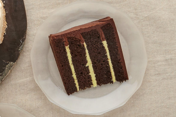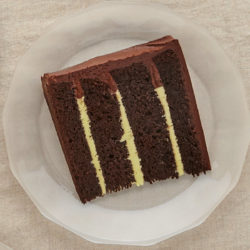 Chocolate Pistachio: chocolate truffle cake with pistachio filling and truffle buttercream (Creme de la Creme Cake Company)