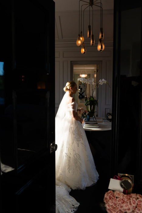 Averi prepared for the wedding day at the Goff home. “My in-laws built their home, named ‘il Bacio’ (which actually means “the kiss” in Italian), with so much love and with the whole family in mind,” she says. “Their intention was not only to create a unique and beautiful home, but also for it to be a gathering place for family and friends.”