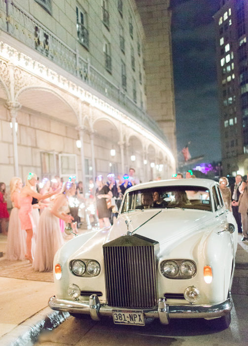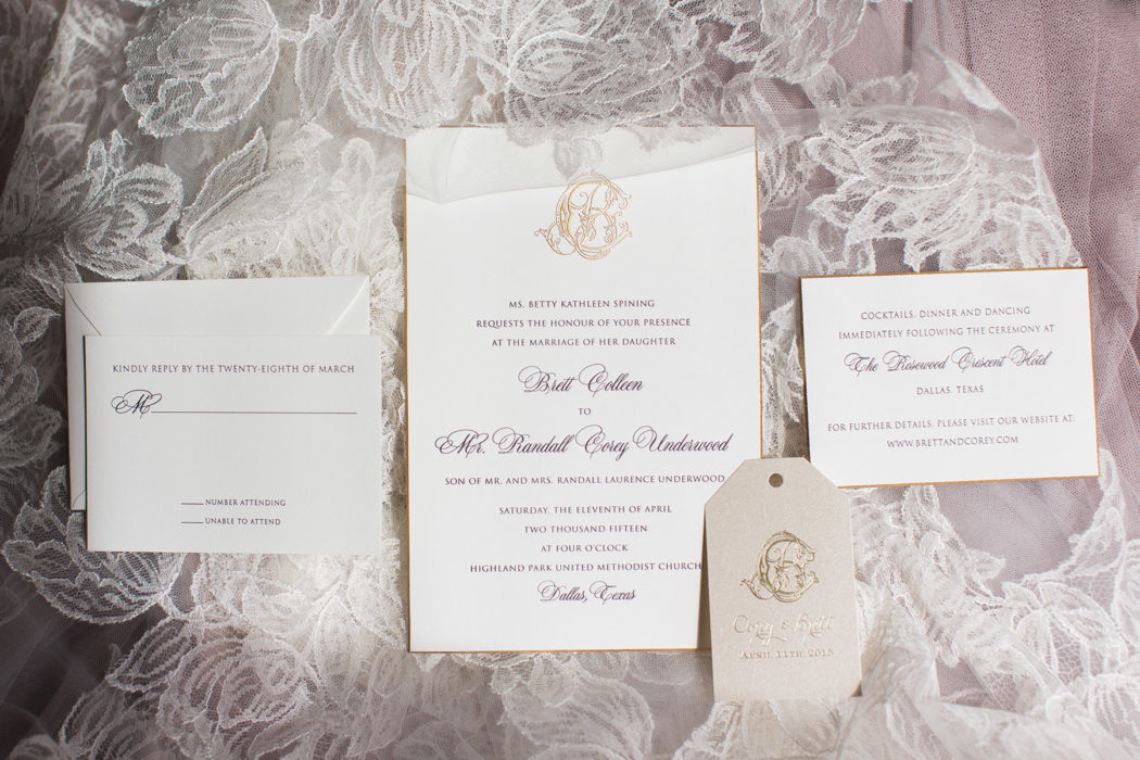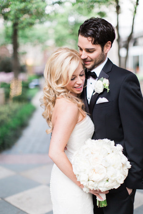 Every holiday season, Brett Spining and Corey Underwood collect a new Christopher Radko ornament that symbolizes something that happened to them that year. During a white-elephant gift exchange in December 2013, Brett opened the last gift to find a Radko diamond-ring ornament—and Corey on one knee. On April 11, 2015, they shared the ultimate gift with a church ceremony and a classic reception at the Rosewood Crescent.