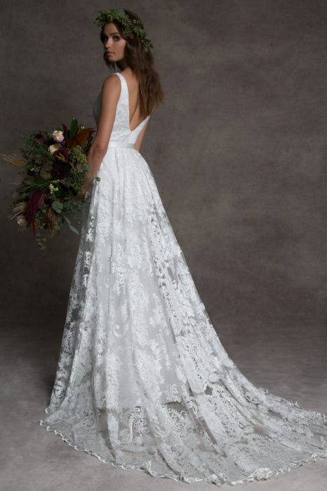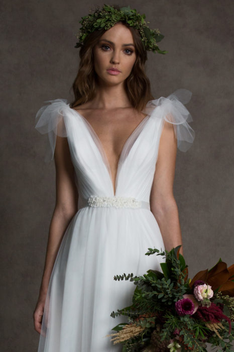 Amy Hidalgo: ROMONA New York has a clean and chic sophistication to the collection that draws a classic bride to the salon.