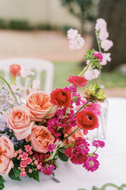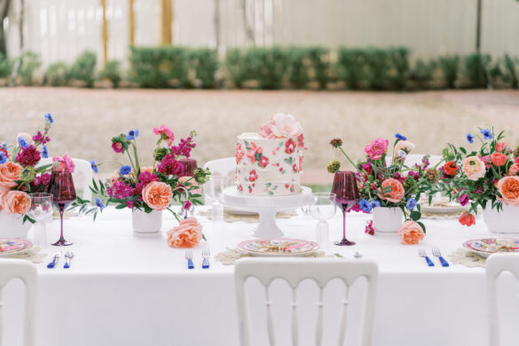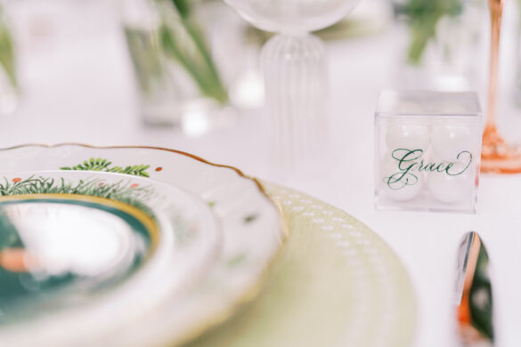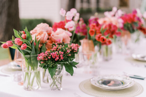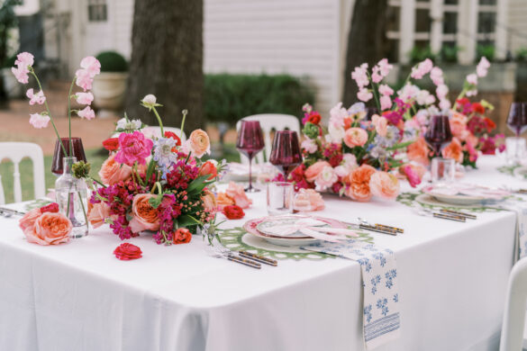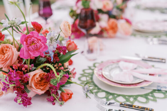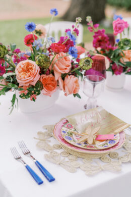 For this styled shoot, Corinne and Taylor came up with three different tablescapes. The first two tables reflected each of their personalities, respectively, while the third table was a combination of both of their unique styles and personalities. The idea behind this shoot was to show you can still be bright and fun while maintaining classic and traditional styles.