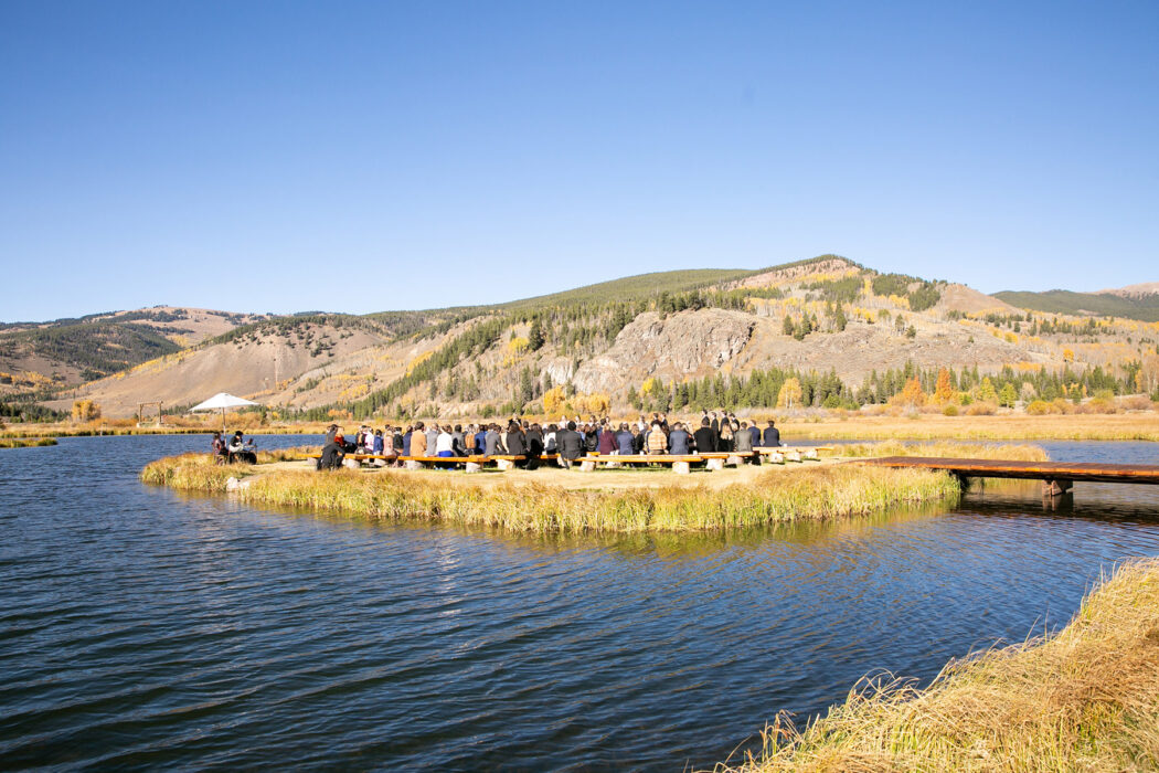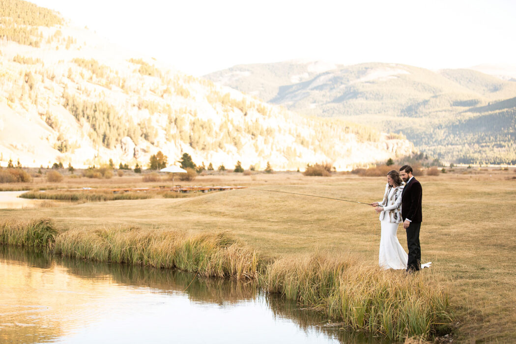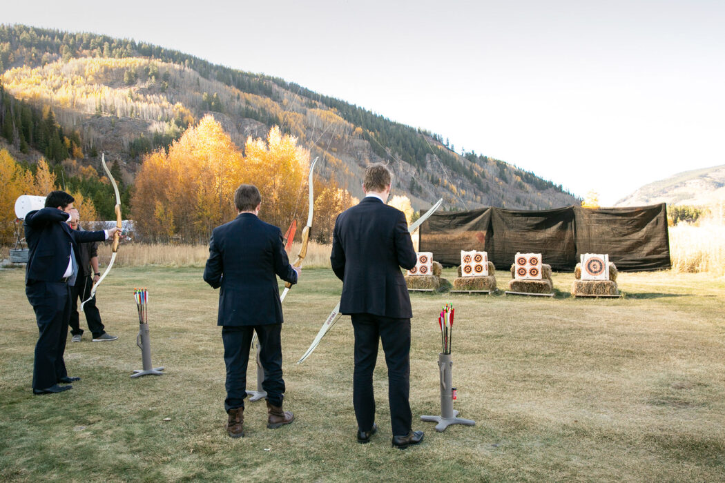 Cara and Emory love being active outdoors so incorporating activities throughout the weekend felt like a natural fit. Their venue, Camp Hale, includes a stocked trout pond where guests could fly fish after the rehearsal brunch and during the cocktail hour. Not an angler? They also offered archer. “Adding activities adds an element of surprise and breaks up the night,” says wedding planner Caroline Fair. She recommends considering your venue, time of year, and start time when deciding whether to include outdoor activities in your own day.