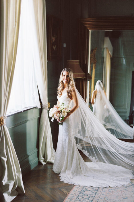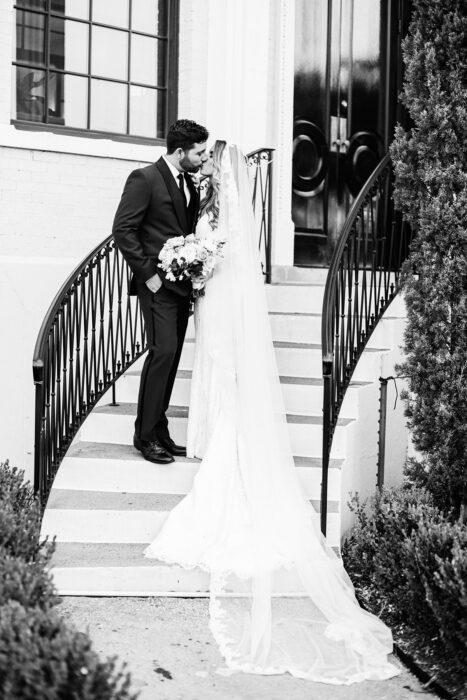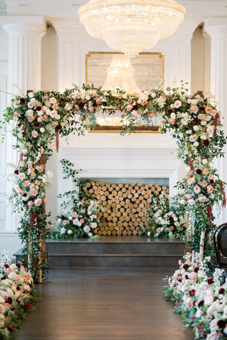 Carly Gaines and Javier Zablah’s intended celebration of more than 150 international and local guests overlooking the Dallas skyline was reimagined amid the pandemic into an intimate affair for 30 at the Mason. The venue held true to the bride’s original vision with its jewel tones and historic charm, and brought together the couple’s closest loved ones for a ceremony decked in deep reds, greens, and birchwood followed by a cozy reception at their Lakewood home. “Before the pandemic, I was pretty stressed about the big original wedding and focused on little things like the perfect cocktail napkins,” Carly recalls. “But COVID reset us both mentally. We were just excited to get married and realized we could do it anywhere. Despite all the odds, we woke up after our wedding day feeling so loved.”