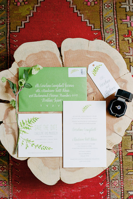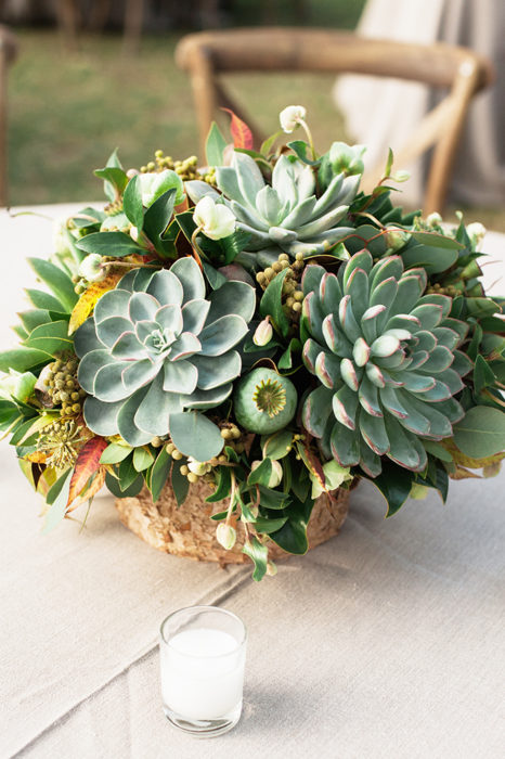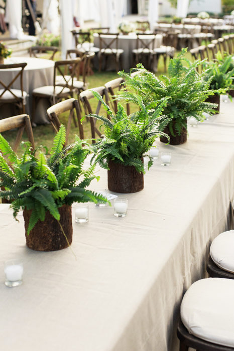 Caroline Farmer and Madison Rhea moved to the same street when they were 4 years old. In seventh grade, the duo began to date, though they eventually went their separate ways. But history worked in their favor, and they reconnected at their high school reunion. After a lakeside Valentine’s Day proposal, the outdoor-loving couple planned an affair under the stars on November 5, 2016. Influenced by camping trips in Colorado, the couple settled on an earthy, green-and-white color scheme, complete with succulent and moss centerpieces.