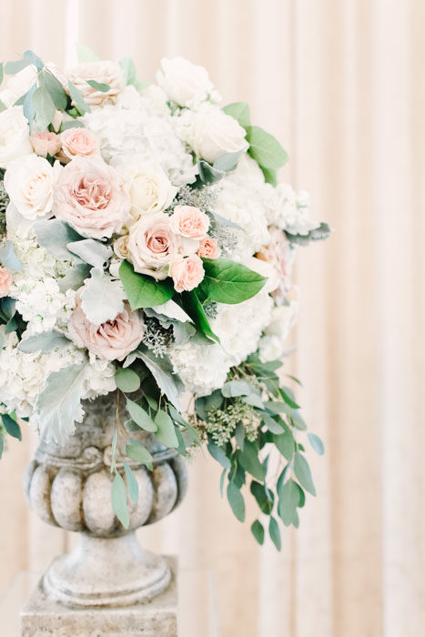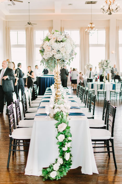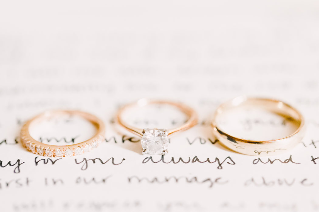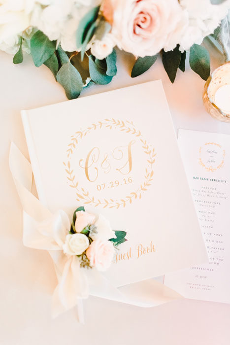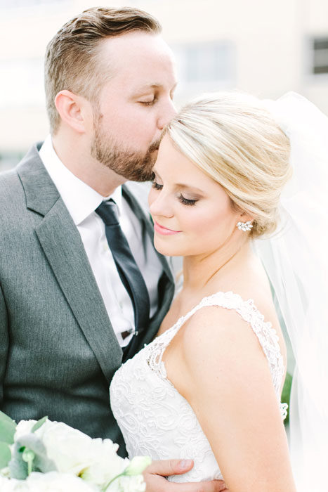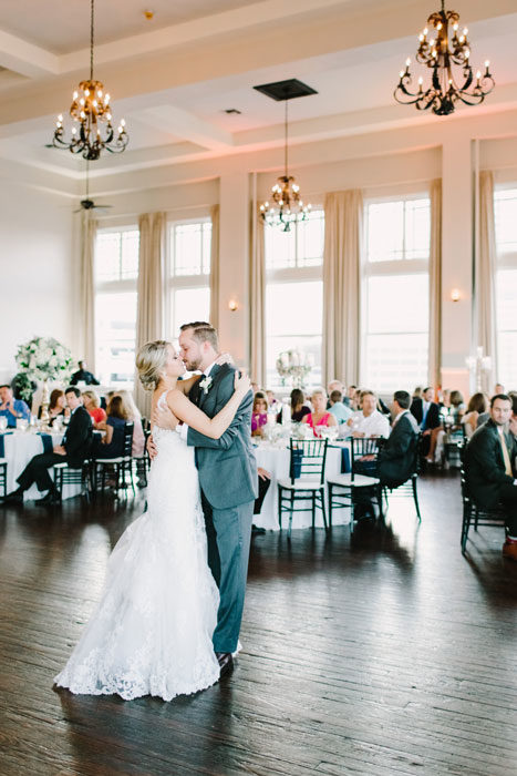 Caroline Mason and Justin James’ connection was instantly cozy. On their first date, they were the last to leave the restaurant. After more hours of conversation, the night was sealed with a kiss. It makes sense, then, that he proposed at home, waking a sleepy Caroline in her leopard-print pajamas. They exchanged vows privately on July 29, 2016, during a “first look” at their Room on Main wedding, which was elegantly washed in shades of cream, gold, blush, and navy.