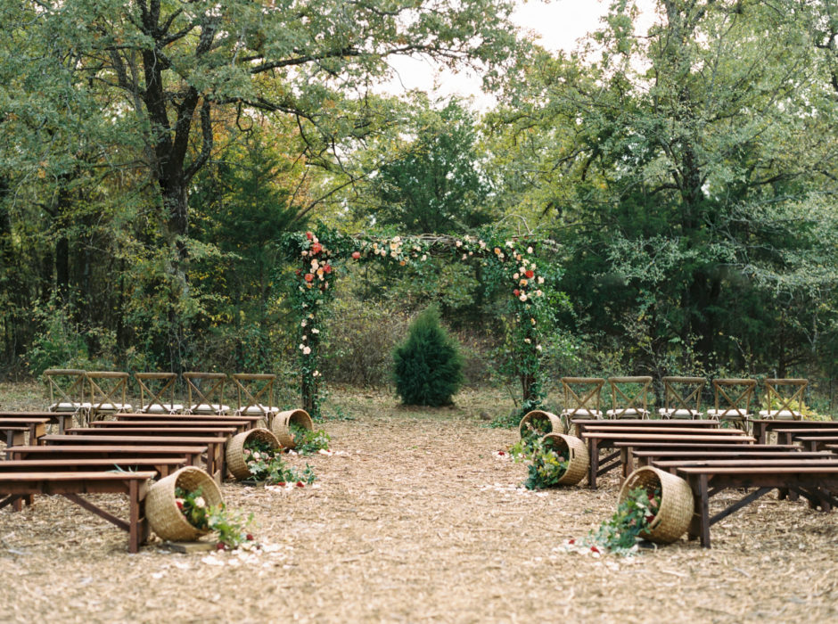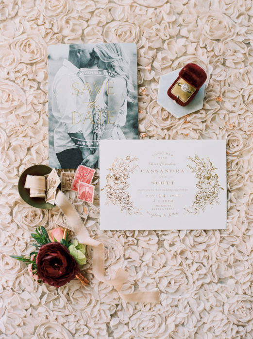 After traveling back home to Dallas, it was time to start planning the wedding. Right away, Cassie and Scott decided they wanted a secluded locale that incorporated trees, land, and greenery. When they toured The Grove’s mile-long canopy drive, 44 acres of property, and intimate ceremony site complete with a green arch, they instantly knew that this was the spot where they would say “I do.”