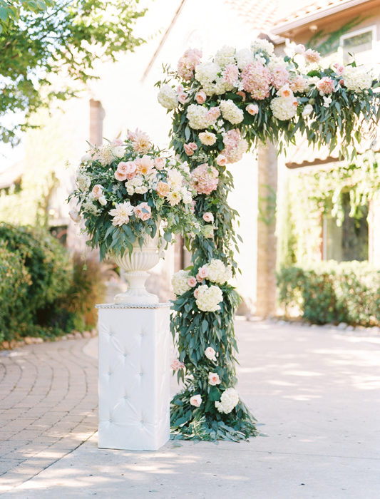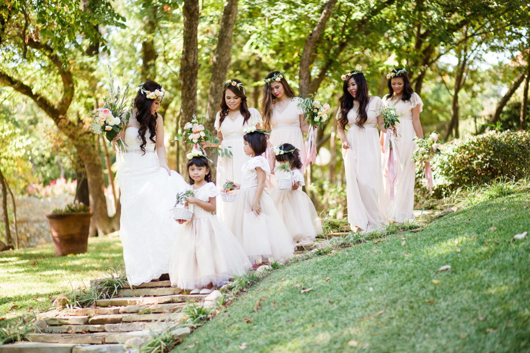 To that end, Cece produced her own invitations using a template she found online, created all the day-of signage, made the flower girl dresses, and assembled bottles of herb-infused olive oil for favors. On the afternoon of October 10, 2015, as she and Nhan said “I do” before a flower-arched altar at Aristide, she and her bridesmaids even bore bouquets and flower crowns they made themselves.