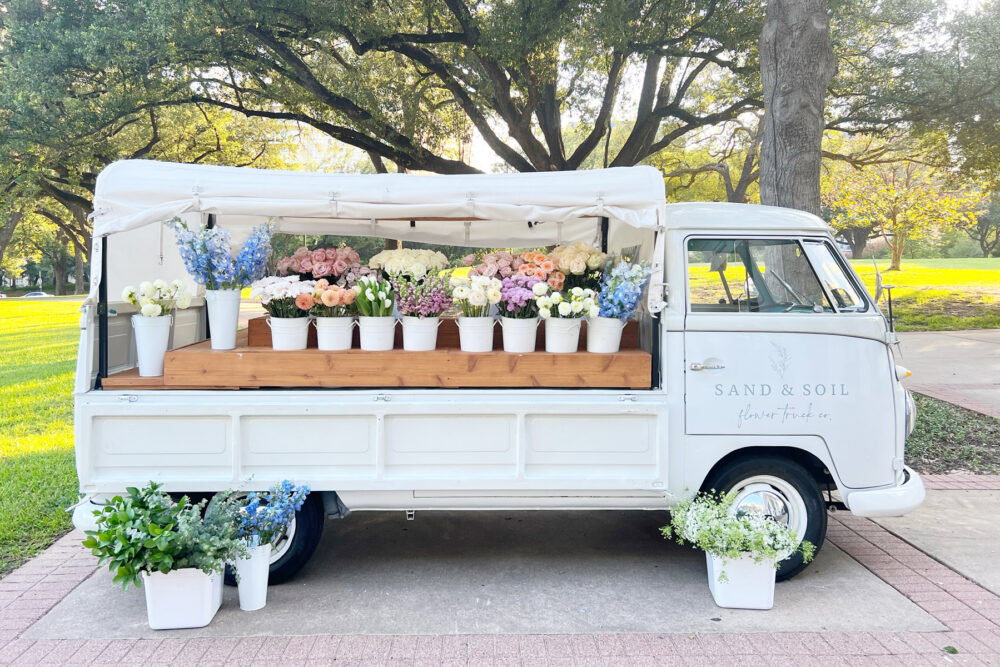 The Sand & Soil flower truck is the perfect way to add a fresh flourish to your festivities. Guests simply visit the truck outside your reception venue, choose their favorite blooms, and let one of the brand’s “floristas” arrange a bouquet for them to take home. If you prefer to keep the experience indoors, opt instead for Sand & Soil’s flower cart, which has a smaller footprint but offers the same experience. sandandsoilflowers.com