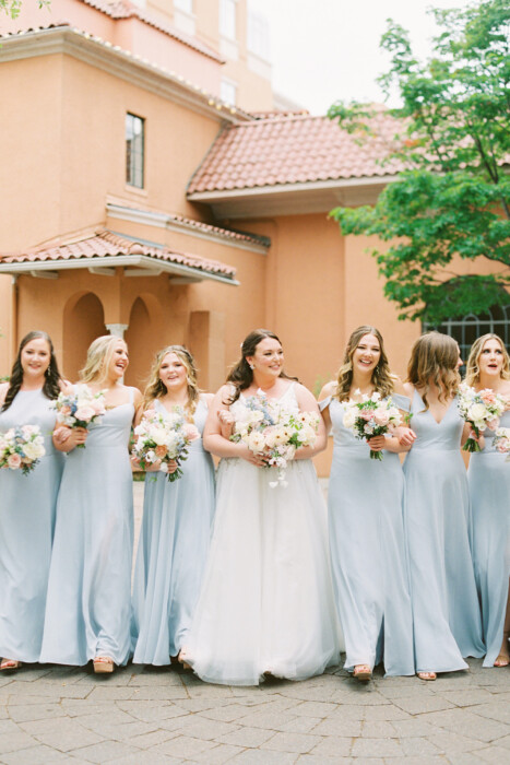 Ryan had originally wanted a wedding dress with sleeves. But when she, her mother, and sister all loved the same Hayley Paige gown with a sweetheart neckline and rhinestone trim, she knew she had found her dress. “We all have very different styles,” Ryan says. “That was just the biggest sign I could have ever gotten.”