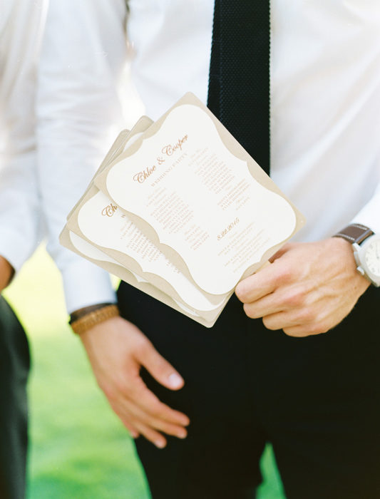 Hometown sweethearts Chloe Heidelberg and Cooper Lett wanted their May 22, 2015, wedding to be beautiful and big on fun: Wiffle ball, Jenga, cornhole, a photo booth, and a coffee station were among the attractions. The lighthearted reception started with a conga line and culminated in the bride and groom crowd surfing above the dance floor. “It was the ultimate celebration,” Chloe says.