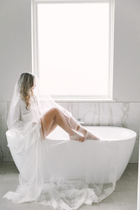 We love this ethereal image of Jessie in her veil, which has been passed down in Brother’s family. Having your day-of photographer snap a few sultry shots is a great option if you like the idea of boudoir photography but forgo a dedicated shoot!