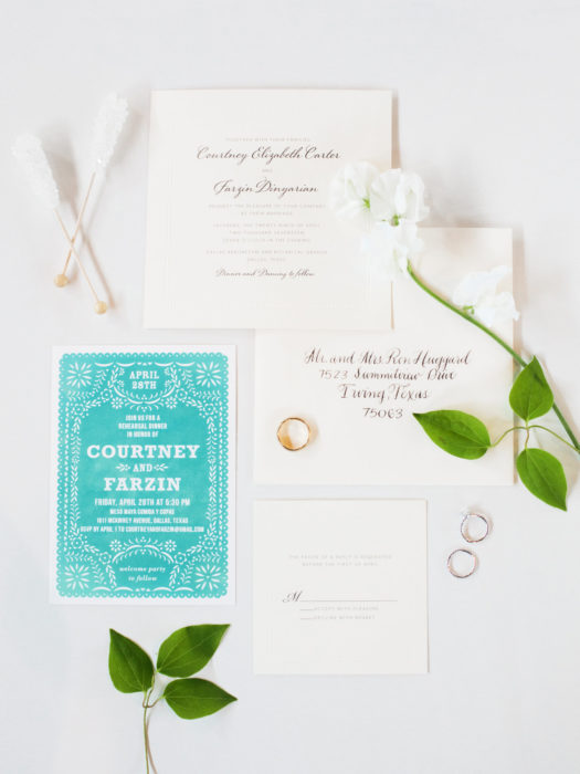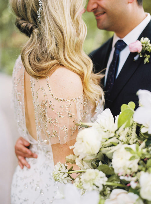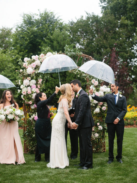 Courtney Carter envisioned perfect spring weather for her wedding to Farzin Dinyarian, but the forecast was 100 percent chance of April showers. They took a chance on the outdoor ceremony, and halfway through, it started sprinkling. Umbrellas saved the day for both the couple and guests while adding an adorable aesthetic to the ceremony on April 29, 2017. Their recessional song, “Here Comes the Sun,” felt more than appropriate for their love and their day.