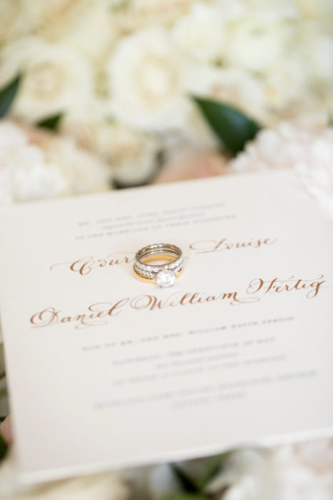 Courtney Cousins admits she’s “not as strong of a skier” as her SMU sweetheart, Dan Fertig, so she was ready to call it a day one afternoon during a family trip to Deer Valley, Utah—but Dan convinced her to do one more run. A photographer was waiting at the top of the lift where Dan proposed. “I was on cloud nine,” Courtney says. Their Southern-style wedding reception at Arlington Hall on May 20, 2017, had all the right touches—blue and white ginger jars, photos with their pup, Duncan, and a fireworks show to end the night.