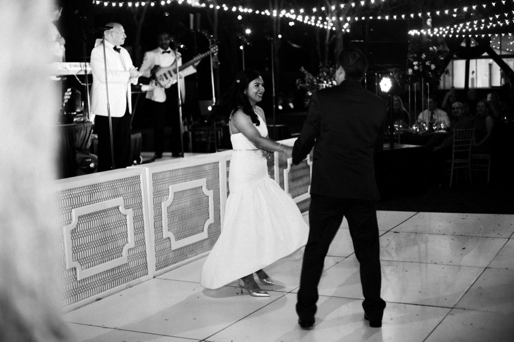 “We would move furniture and practice at night,” Jared says. “Diana picked up on it a lot quicker than I do, so there were some moments of frustration. But we had fun.” Diana also bought a reception dress from Bhldn that was more conducive to cutting a rug than the beaded Anna Campbell gown she wore for the ceremony.