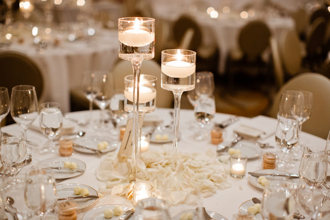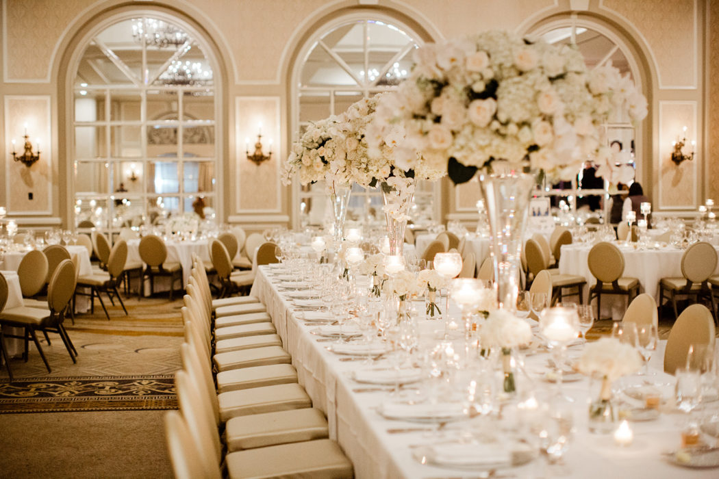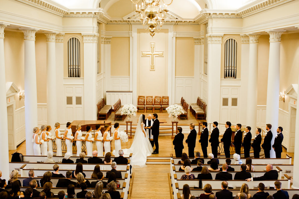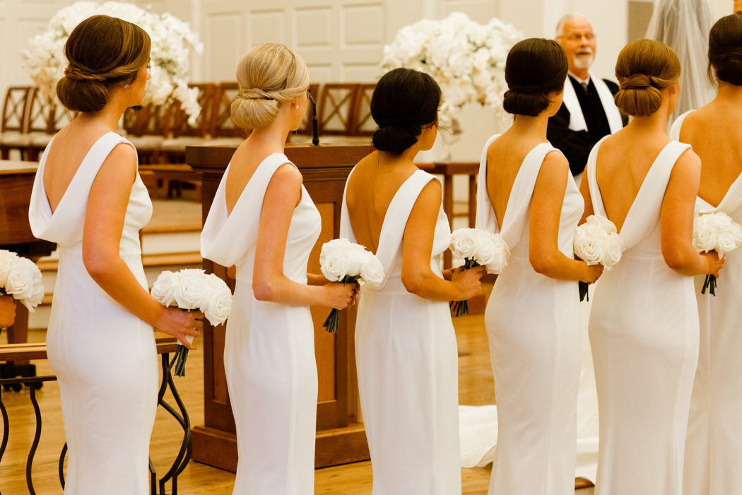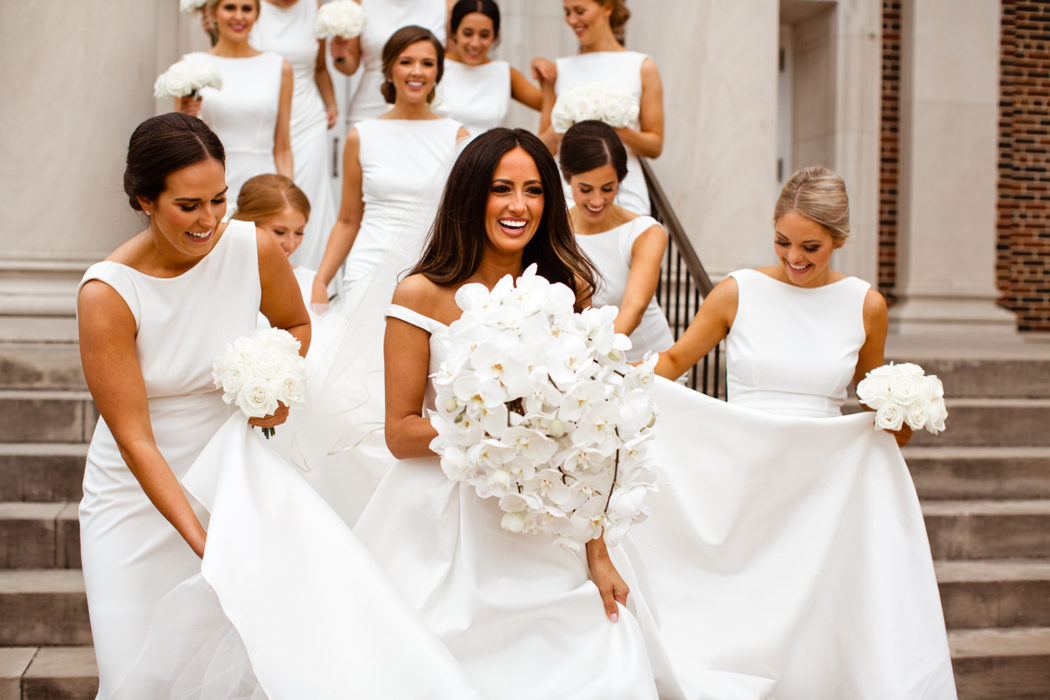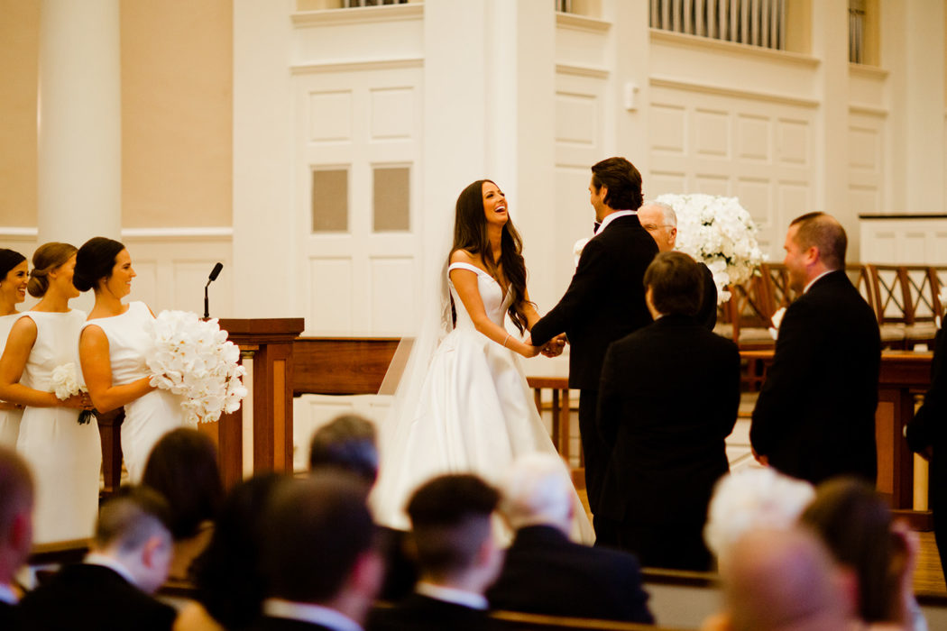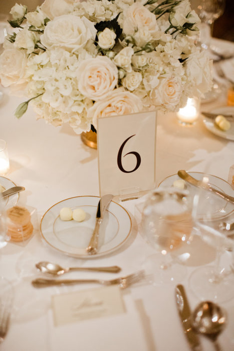 After choosing her dress, Diana decided to keep the ball rolling with the color when it came to designing the wedding. “Our whole house is white, I love wearing white, and now that I think about it, even both of our dogs are white,” exclaims the bride. To keep with her vision of a classic and traditional wedding, the color appeared within every aspect of the event, from the bridesmaids’ dresses to the reception linens.