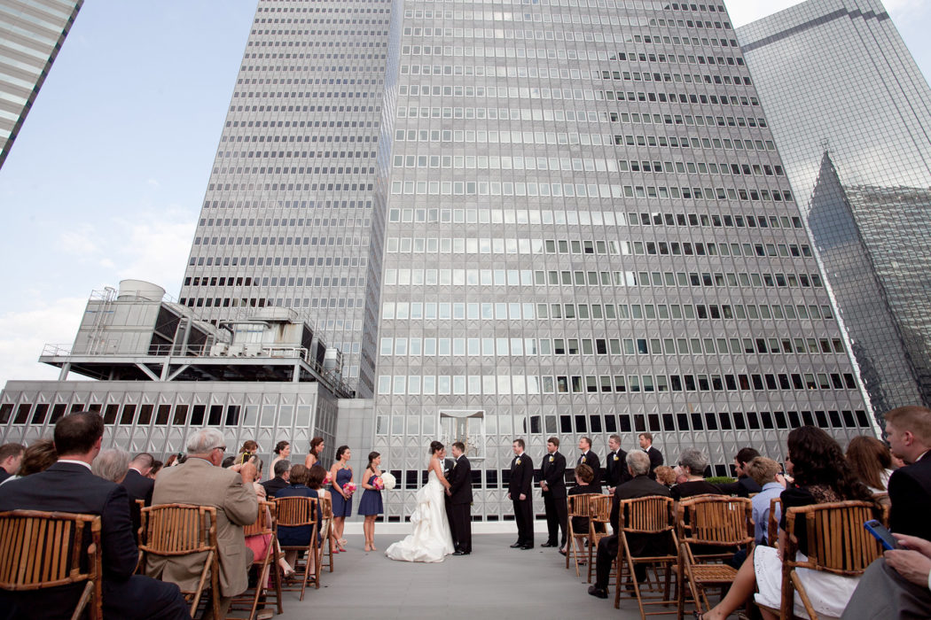 It must have been fate for an OU girl to fall for a Texas guy. Ryan Collins had gone to Norman with some friends to watch a game, and after, his group was asked to join a big tailgate swarming with Sooners. Ryan nearly turned down the offer, but when Emily Mindeman caught his eye, he decided it might not be so bad after all. He got her number and after a “full-on, long courtship” (her words), the couple got engaged on her 30th birthday. “It was worth the wait,” she says. The couple wed on April 28 in a rooftop ceremony with Dallas skyscrapers all around.
