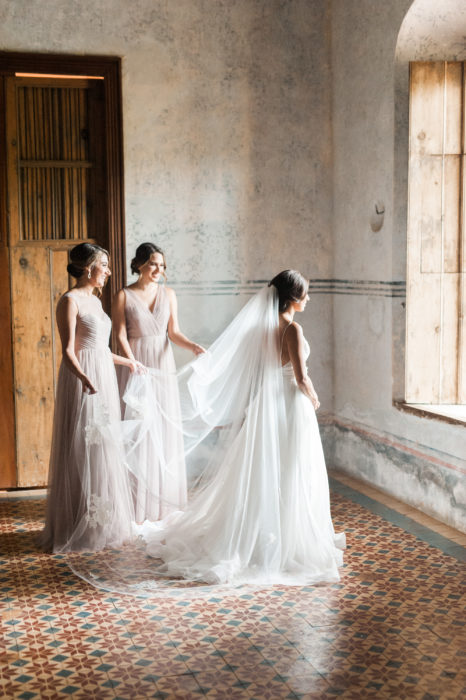 The last thing Emily wanted was a typical resort town wedding. An authentic experience was very important to her. The storied colonial town Merida, filled with estancias and churches, had been recommended by friends and family. “Once we stepped foot into the mesmerizing Hacienda Tekik de Regil, we immediately knew it was the place.” The estate’s roots date back to the 16th century.