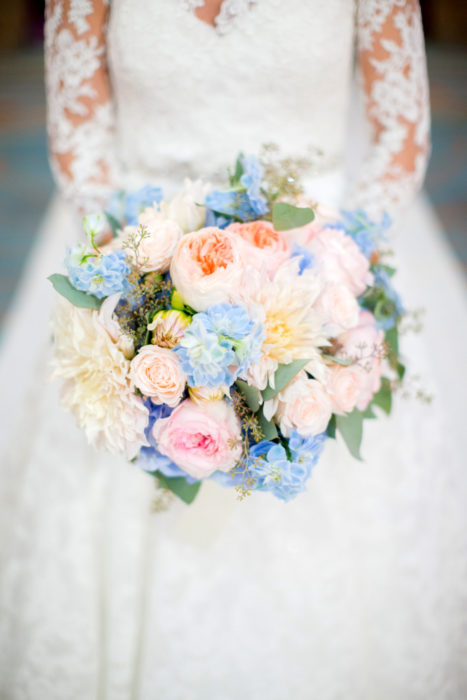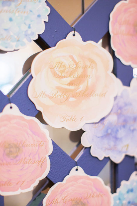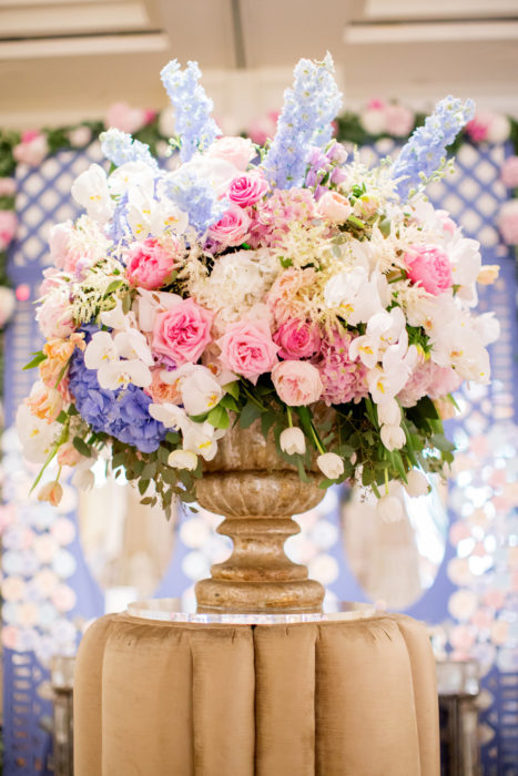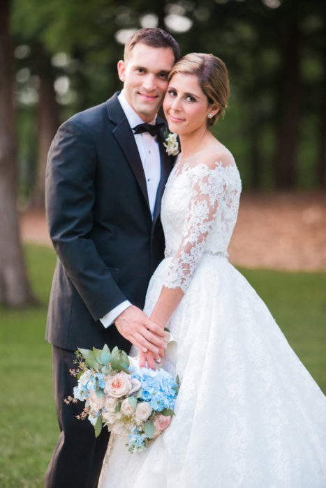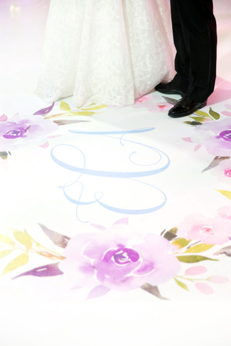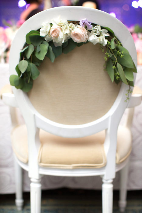 Erica Eisen and Adam Chernoff’s relationship moved as swiftly as it took them to swipe right—five months after meeting on dating app JSwipe, the couple was engaged. Erica returned to her favorite hotel—the spot she celebrated her bat mitzvah—for her wedding on June 17, 2017. She called on Todd Fiscus to realize the pastel color scheme. “I knew it was a summer wedding, so I wanted soft, beautiful, light colors,” she says. A flower chandelier hung above as the guests, including Erica’s 95-year-old grandmother, danced to the Jordan Kahn Music Company.