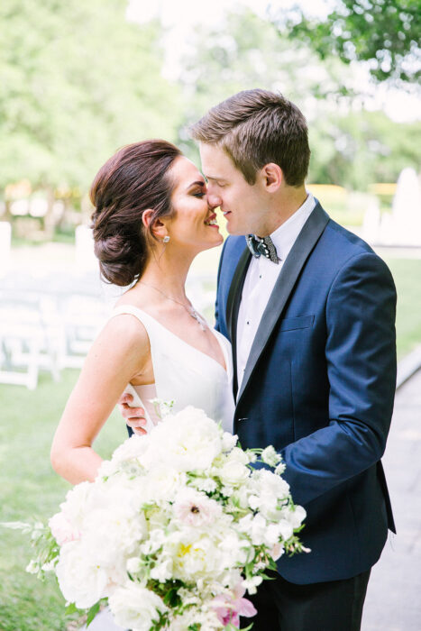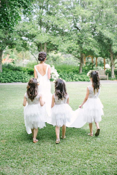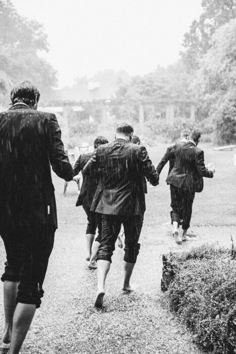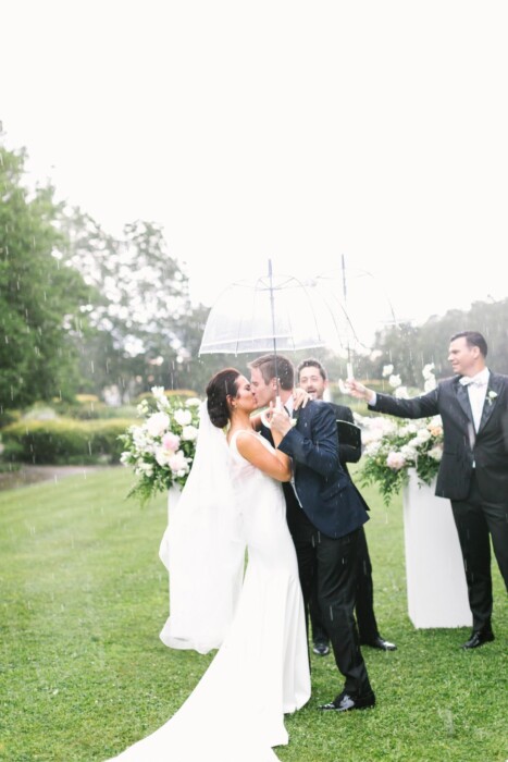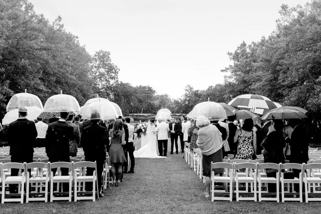 Everything was looking sunny leading up to Erin Byrne and Jimmy Watson’s outdoor ceremony, including the forecast: clear skies with zero percent chance of rain. But on June 1, 2019, a surprise storm unleashed a downpour on the bride and groom as they were saying their “I do’s.” Fortunately, the easygoing pair were able to make the most of the situation, and following a sped-up ceremony and ring exchange, they completed their vows inside. “It’s weird to say that the rain was my favorite part of the day, but it was, ”Erin says. “Everyone was such a good sport.”