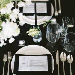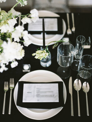 Next up are the invitations, which will generally be more formal than the save-the-dates. But they can still offer a surprise, as our guests will see when they receive theirs! *wink* The sleek, elegant, and modern style of our venue also plays into our invite design, just as yours can.