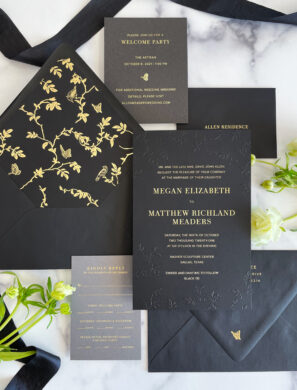 And remember the “key” that I mentioned before? When it comes to stationery, it’s all about consistency. You want to tell the same “story” all the way through. Because this is your guests’ first look at what’s to come. It sets the tone for your day, complements your wedding vision, and gets people excited!