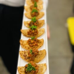 To give you an example of what this might look like, consider how Francisco and I are planning our rehearsal dinner. Our chosen venue allows for off-site catering, so we’re bringing in Proper Catering, whom we both love.