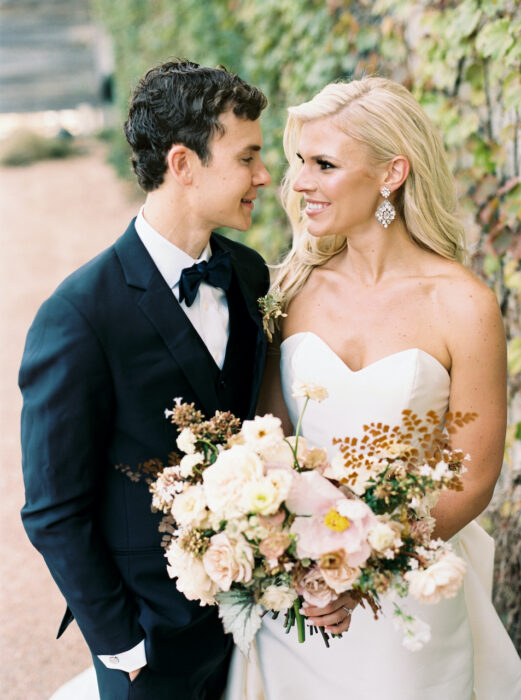 The couple toasted with champagne flutes from the bride’s parents’ own wedding, and had their first dance to “Perfect” by Ed Sheeran on September 28, 2018. The dance floor, lined with lush florals and wicker lanterns, featured the same design as their hand-painted invitations by Mackenzie Graham of Gypset Creative. Guests gave the newlyweds a sparkler sendoff as they drove toward their New Zealand getaway in a ’63 Rolls Royce.