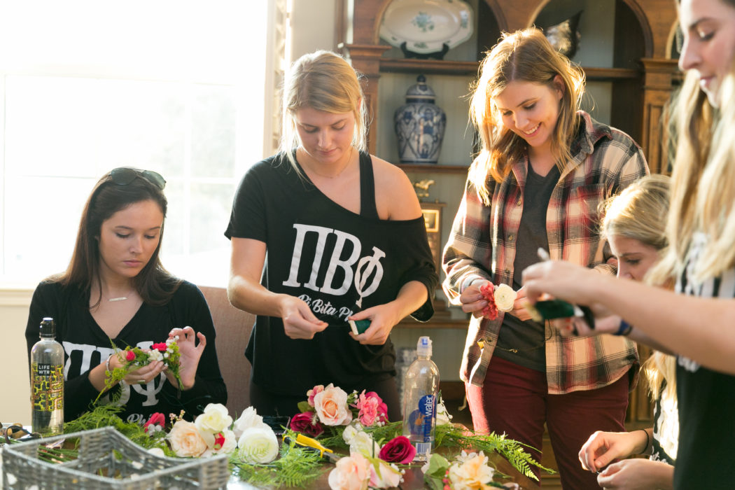 What happens when you put D Weddings and a sorority together? A whole lotta flower crowns and fun! At our first ever D Weddings sisterhood event, we talked all things careers and weddings, made at least a hundred flower crowns, and, of course, ate cake. Pop Parties put together the theme and tablescape, Branching Out Floral taught us everything you could know about floral arrangements, Posh Cakes created a nom-worthy champagne-flavored cake, and Tracy Autem of Lightly Photography captured it all.