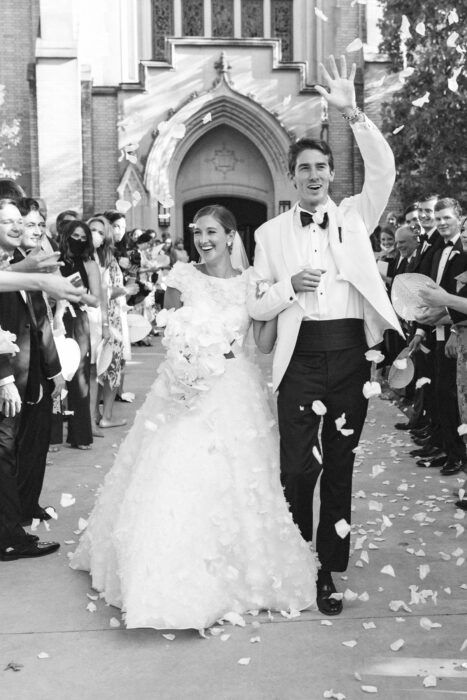 By early June, when COVID-19 had shown no signs of slowing down, Meredith Brander realized she needed a plan B for her wedding. She and fiancé Ford Yates, whom she met at the University of Oklahoma in 2015, were set to have a 300-person wedding the next month, followed by a reception at the Dallas Country Club. As it turns out, the change of plans worked in Meredith’s favor—a downsized gathering could be moved to Ford’s parents’ backyard, her initial choice for a venue. The couple was able to keep their July 18 date, with a ceremony at Highland Park Presbyterian Church, where Ford’s parents wed, and a backyard celebration attended by half of their originally invited guests. After weeks of uncertainty, getting to spend time with their nearest and dearest made everything worthwhile. “I didn’t even know five days beforehand if the weekend would happen,” Meredith remembers. “The wedding was kind of the first time we saw family and friends, and it was a huge relief to finally celebrate.”