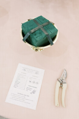 While the event goers were getting settled, Taylor gave a rundown of the proceedings, starting with a live demonstration of how she creates table arrangements, specifically in a low, bowl-style vase with floral foam. We watched, amazed, as Taylor crafted a perfect bouquet, explaining her technique as she went along and advising us to follow these steps: