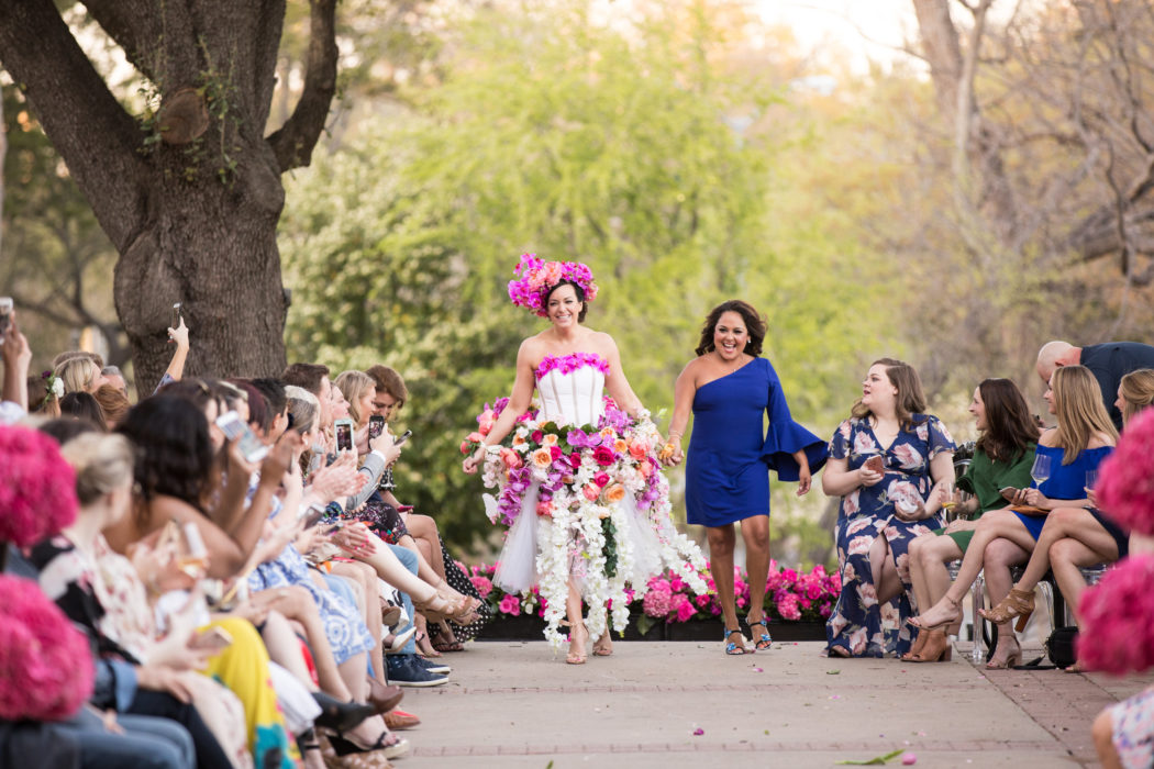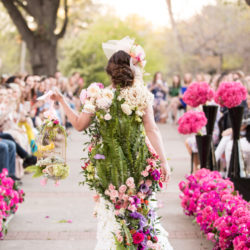 In 2014, Arlington Hall kicked off its first springtime appreciation party for planners. Each year since, they have introduced a theme, which florists and designers take and run to the moon with, resulting in imaginative tabletops and festive outfits. Instead of their usual seated dinner this year, Arlington Hall decided to do something different. “I was looking at a fashion magazine, where I saw a floral headpiece. It inspired me to come up with an unconventional challenge,” says Allison MacNealy, director of catering for Arlington Hall. A Project Runway-inspired fashion show ensued. Florists and designers constructed dramatic floral ensembles that were modeled on the lawn. The final surprise? “We selected a few wedding planners to be models, which no one knew about until they walked out!” We can’t wait to see how they’re going to top this next year.