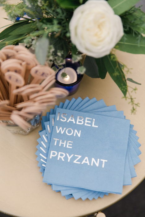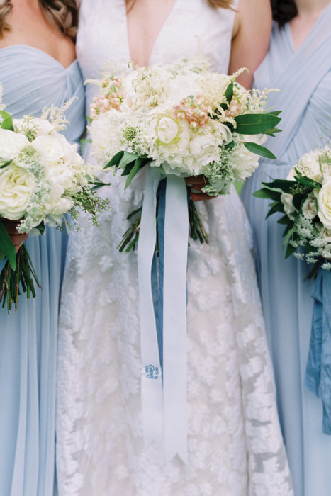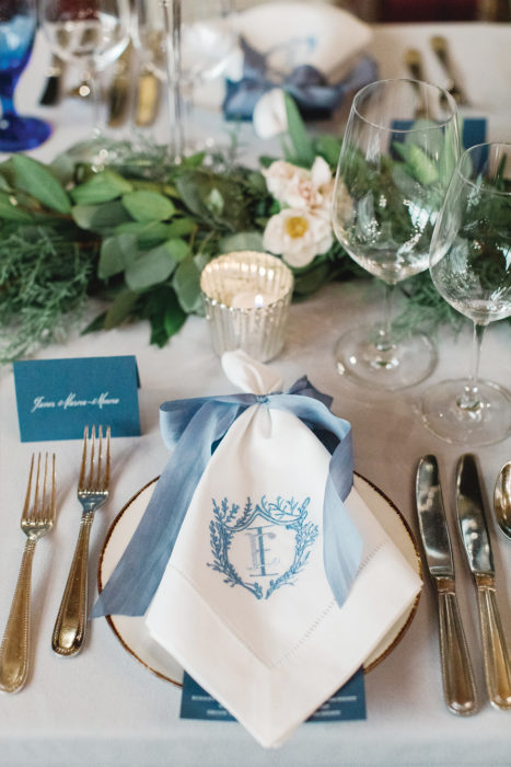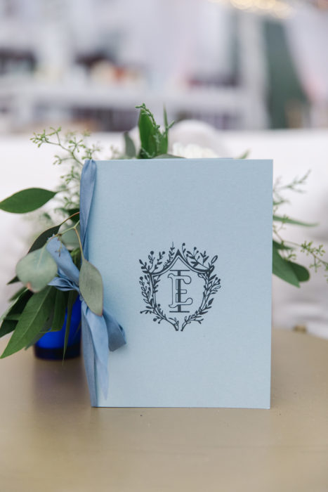 The monogram used throughout the wedding decor features a watercolor design by Isabel’s godsister.