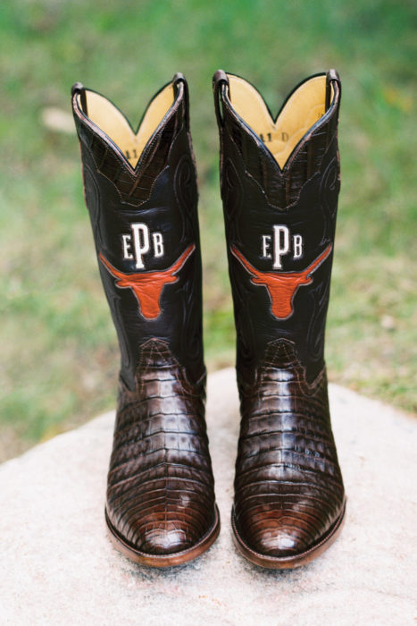 Eric wears boots everywhere, from football games to black-tie events. Isabel had Luskey’s in Fort Worth design a custom pair of boots as a gift.