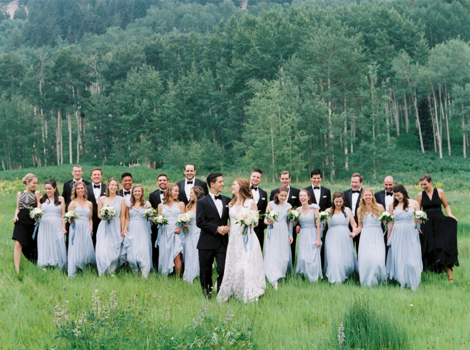 It only took two Greek life date parties at the University of Texas at Austin for Isabel Miller and Eric Pryzant to realize that they were meant to be. Though they moved to different cities upon graduation, they maintained their romance long distance, with travel as a key component. Six years later while in New York City, Eric proposed on a helicopter landing pad overlooking the city. ”We knew we wanted a destination wedding due to our love of traveling,” Isabel says. For their nuptials on July 21, 2018, the pair chose a whimsical mountaintop in Beaver Creek, Colorado.