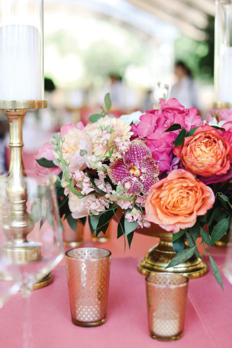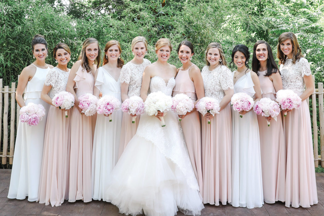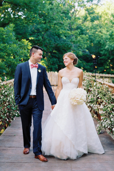 On June 9, 2018, Emily and Garrett were wed in a ceremony that included an African prayer recited aloud by the couple’s loved ones. For the decor, Emily chose a color scheme of summery corals and pinks to pop against the zoo’s natural woods and greenery. Their special day was complete with a chance to feed the giraffes—“something I will never forget,” Emily says. The animals also made appearances in the form of drink stirrers, cuff links, and—in Garrett’s ultimate unveiling to his bride—giraffe-print shirt sleeves. “They were a huge surprise to me!” Emily laughs. “But I love his spontaneous attitude, so they were a fun touch.”