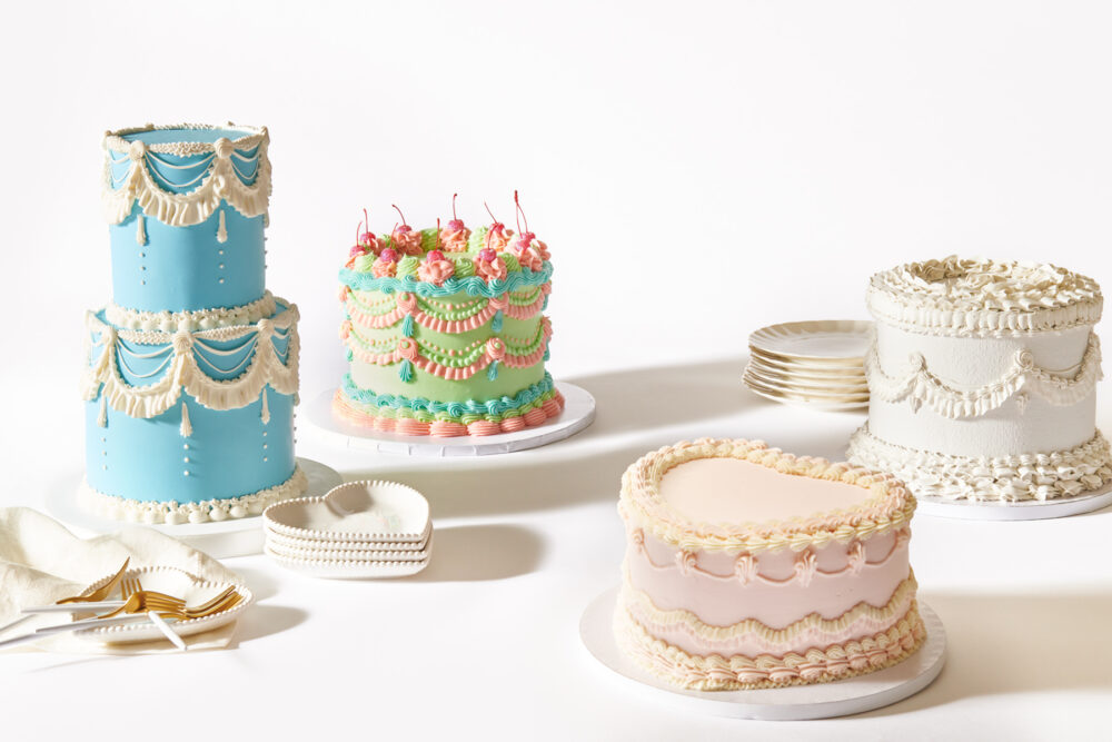 If you’re looking to inject a bit of color into your day-of sweets, look to Society Bakery and their signature “vintage” cakes.