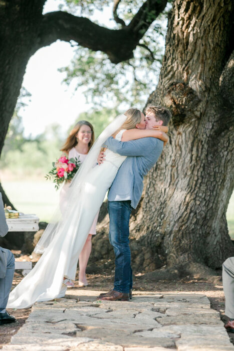 Kate Pease of Kate Pease photography captured this intimate ceremony at the Five Oaks Farm in Cleburne. The reception has been rescheduled due to COVID-19 but for their nine guests, the ceremony went on.