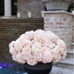 Flower arrangements by Brad Duren accent the space without overpowering it and add a pop of color, accenting the surrounding space with its simplicity. Homes usually aren’t a blank canvas like other venues, so keeping decorations simple keep the space from being overwhelming.