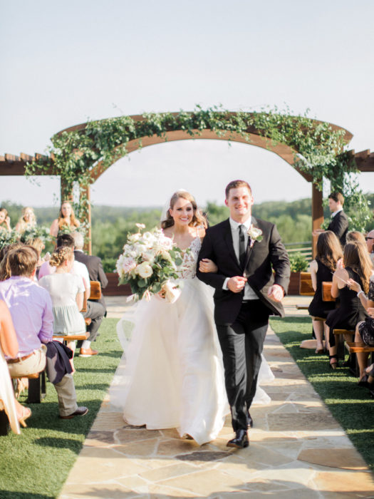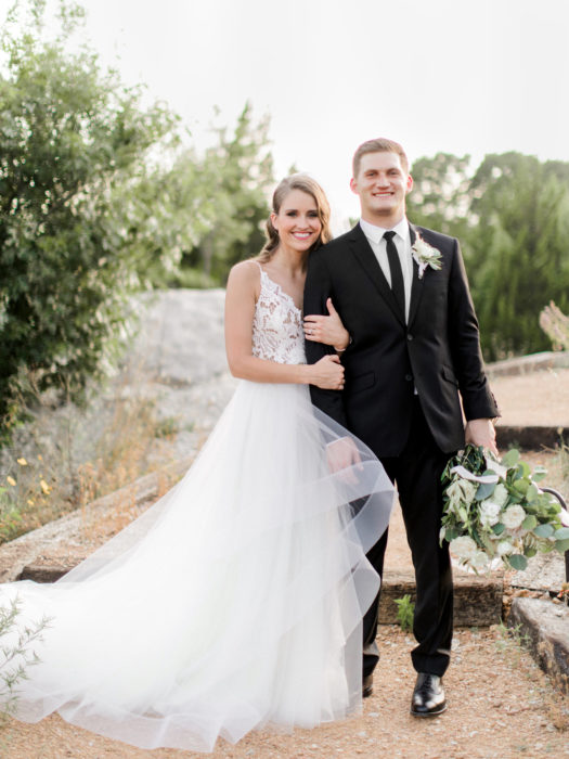 Under the guise of attending a wedding for his coworker, Corban Brown tricked Haley Dale into driving to Grapevine to a vineyard. Instead of a wedding, Corban led Haley to a gazebo decorated with flowers and candles and surprised her with a ring. Brown Asian pears inspired Haley to create an earthy, whimsical tone for the wedding on June 30, 2017. Following the reception, the couple was whisked away in the father of the bride’s 1964 cherry-red Corvette. “I have always dreamed of driving away from my wedding in that beautiful little red vet,” Haley says.