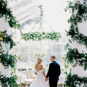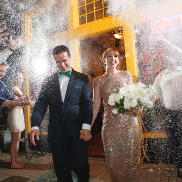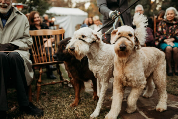 Take a page out of Katie Jones and John Templeton’s book and feature your dogs with personalized decor items, or Carolyn Roshek and David Schultz’s groom’s cake featuring their beloved white labs, Milan and Parris. Or, if you’ve accidentally booked a venue with a no-pet policy, follow in Abby Brehm and Robert Cowlishaw’s footsteps and create a life-size cutout—perfect for photo opts and dance floor props.