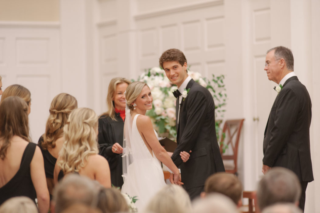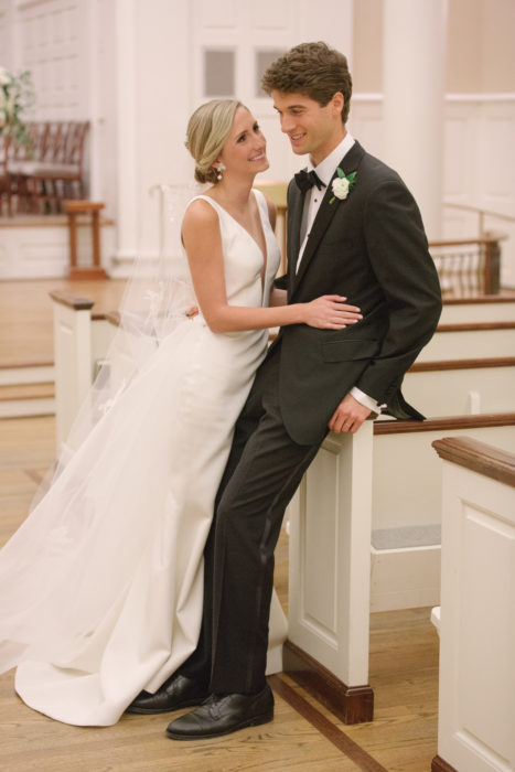 The wedding took place on December 15, 2018, at the Perkins Chapel. Keeping with tradition, Hayley waited until Pachelbel’s “Canon in D” played throughout the chapel to reveal herself. “I think not having a first look and seeing Dalton for the first time when I walked down the aisle made the moment all the more special,” Hayley says.“I wasn’t sure I would make it to the end of the aisle.”