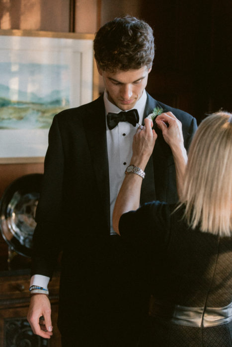 As the evening progressed, friends and family moved to the jazz band, who sported Santa hats. One of the couple’s favorite moments was when one of the Dalton’s college friends got up on stage and performed a song, which he had performed at a piano bar the night before, post-rehearsal dinner. “Naturally he needed to perform the song again at our wedding, too,” Hayley says.