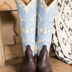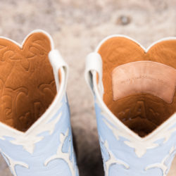 And Ian didn’t just stop at getting her a generic pair of Miron Crosbys. He selected boots from Miron Crosby’s custom program and called on his mother and sister to select the leather colors, stitch colors, and font.