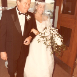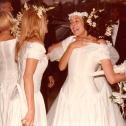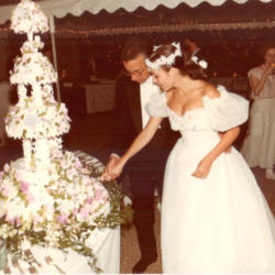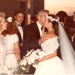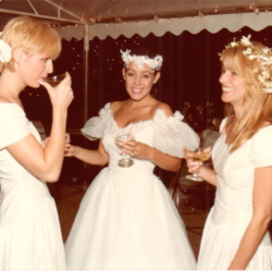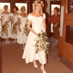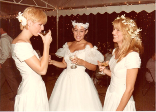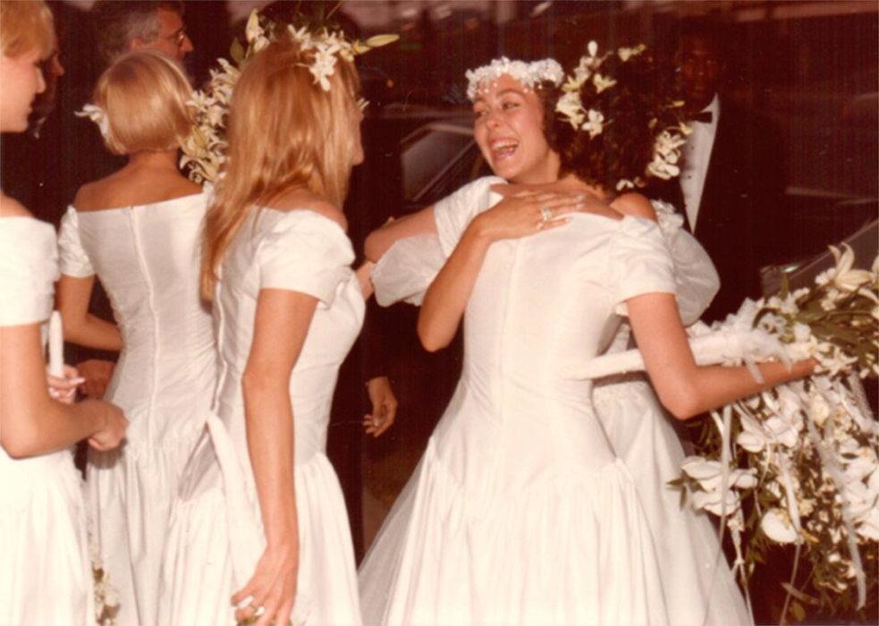 For her wedding dress, Michelle went custom as well. Like most brides in 1984, Princess Diana’s wedding to Prince Charles was a chief source of inspiration. After finding a local dressmaker, her mother, who is a painter, drew out the design. “I think for more than a month, little tiny seed pearls were sewn all over the bottom,” Michelle recalls.