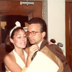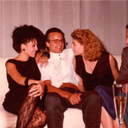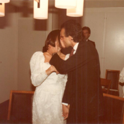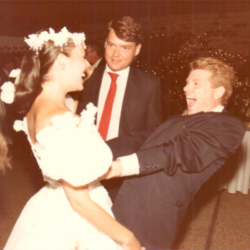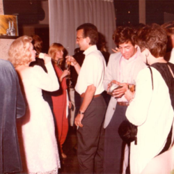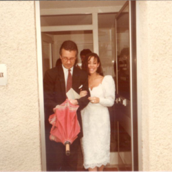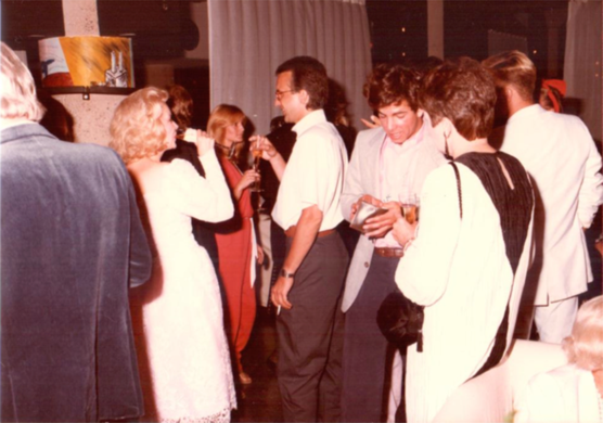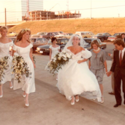 Michelle and Bernard’s engagement party took place the night before the club officially opened. Their guest list was a “who’s who” roster of Dallas at one of its most interesting moments. “Two of our other dear friends, Valarie Kennedy and Chuck Durrett were a part of the original group that opened the club. They were in our wedding too. Our good friend, the artist Dan Rizzie, did the artwork on the columns inside the club,” says Michelle. “So all in all, we had a lot of friends involved in the beginning.” The bride wore black: Michelle chose a figure-sculpting Azzadine Alaia dress for the occasion, which she complemented with black accessories, including a vintage feathered 1960s Frank Olive hat. “It was an epic engagement party!” she says.