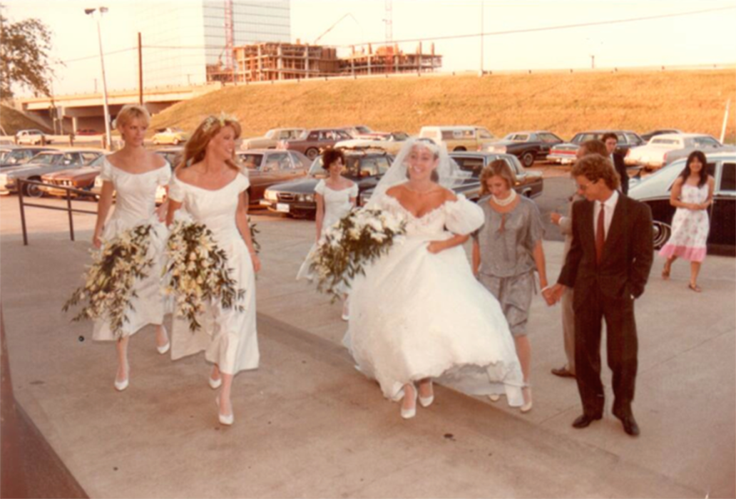The club—designed by, yes, Philippe Starck—was only open for a handful of years, but at its peak, it was the epicenter of 1980s counterculture: a place where drag queens, Texas socialites, and French creatives intermingled. “My best friend and bridesmaid Christina de Limur and BFF Arnaud Fioramonti were a part of the gang that started the club,” says Michelle. “Being French, they both knew Philippe and were instrumental in getting him to Dallas.”