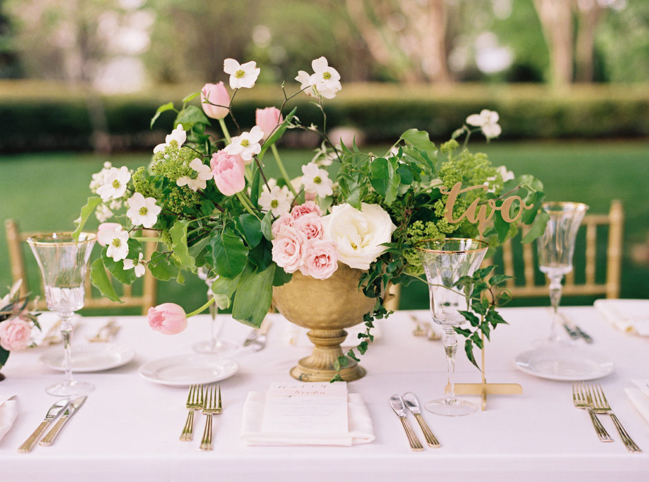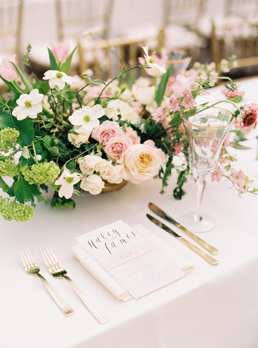 She and James snagged April 4, 2015 for their wedding date at the Arboretum, which had been a special place for them throughout their courtship. They selected his-and-hers cakes in red velvet and chocolate and, when choosing flowers and decor, decided to let the natural beauty of their venue shine. “The Arboretum is so beautiful I didn’t want to overwhelm or try to compete,” Haley says. “That’s why a lot of the tables at the reception just had garlands and floral runners rather than the big arrangements.”