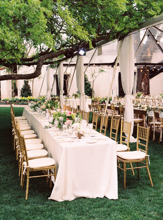 So on the last day of October, when James proposed at the Arboretum—following a day he’d packed with visits to their favorite places—the wheels were already in motion. Her mom and sisters, all in town to celebrate at a surprise engagement party that evening, had booked an appointment to go dress shopping the following day at Neiman Marcus, where Haley found the perfect Monique Lhuillier gown.