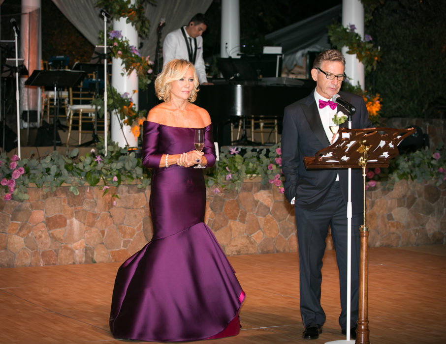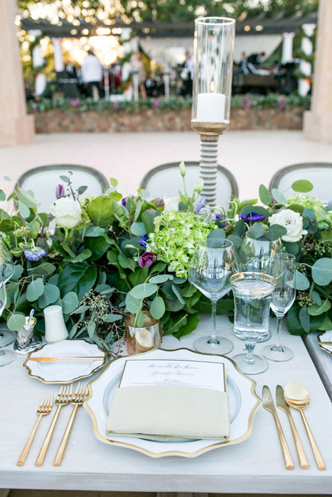“I have a very joyful, happy life. I wanted the theme to be joy; I wanted everything to be purple,” she recalls. Her wedding planner initially had other ideas. “He wanted pastels, and I wanted to do a bright flower wall. He wanted a moss wall, but I’m from Dallas,” Jennifer says. “I like things that are beautiful and big.” Jennifer’s wishes prevailed and her gorgeous Napa Valley wedding to Eric Brown was indeed a celebration of her favorite color.