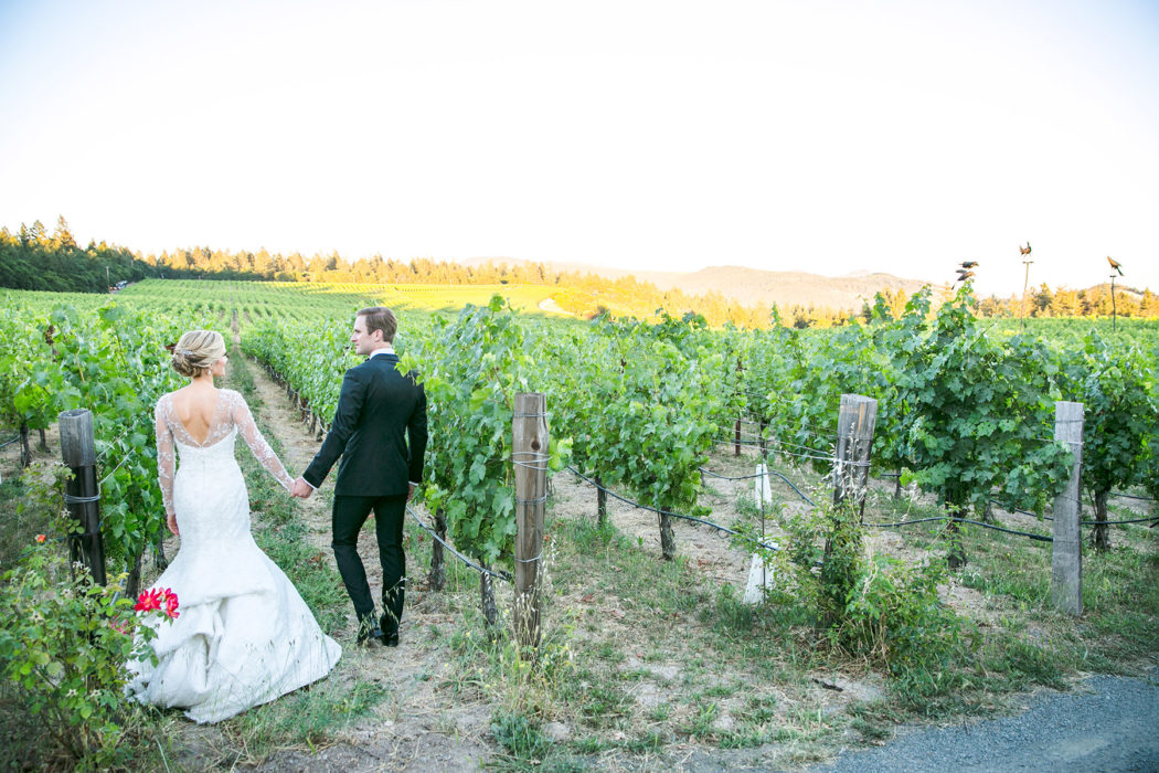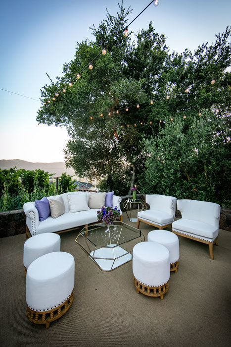 Eric proposed on a weekend getaway to Lake Tahoe. They kept the news to themselves for two days, savoring the moment. Choosing the Hall estate was a no-brainer, a source of many happy memories for the couple. They weaved various winery venues into wedding events, including the rehearsal dinner in the tasting room and the after-party in the wine caves. “We danced until 4 a.m.—including my parents,” she says.
